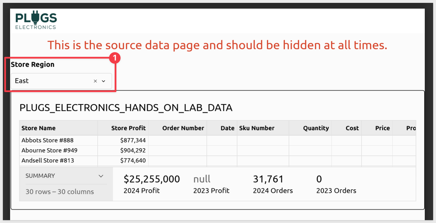 In our example report, we have a filter applied to the base table for Store-Region. In this way, the same report can be reused but the data filtered based on the recipient's region.