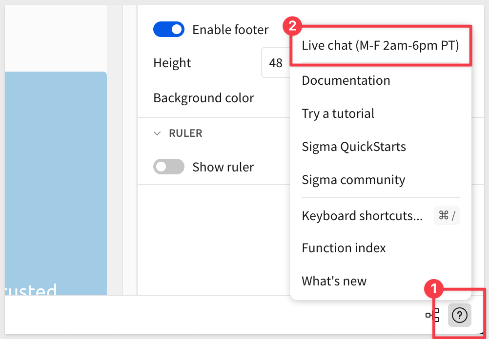 If you are really stuck, you can always use Sigma's in-product chat feature to speak to us directly: