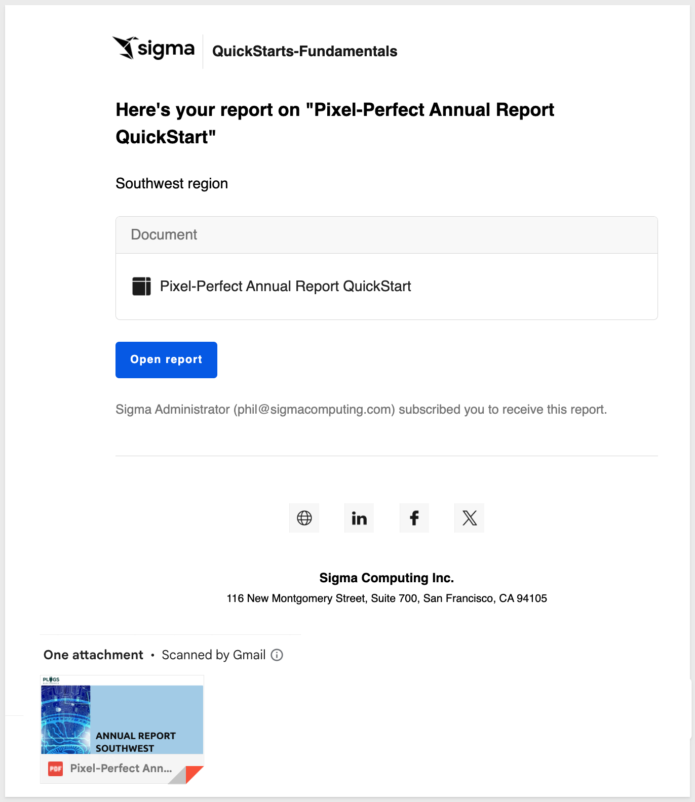 In this QuickStart, we explored how Sigma makes Pixel Perfect Reporting effortless while maintaining enterprise-grade capabilities. Using the Plugs Electronics Southwest Annual Report as a real-world example, you learned how to: