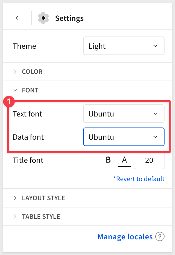 For example, in the FONT section, we can set our text and data font to Ubuntu:
