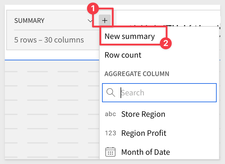 Let's create one more summary value by clicking on the caret ^, and selecting the + button. This time select New Summary.