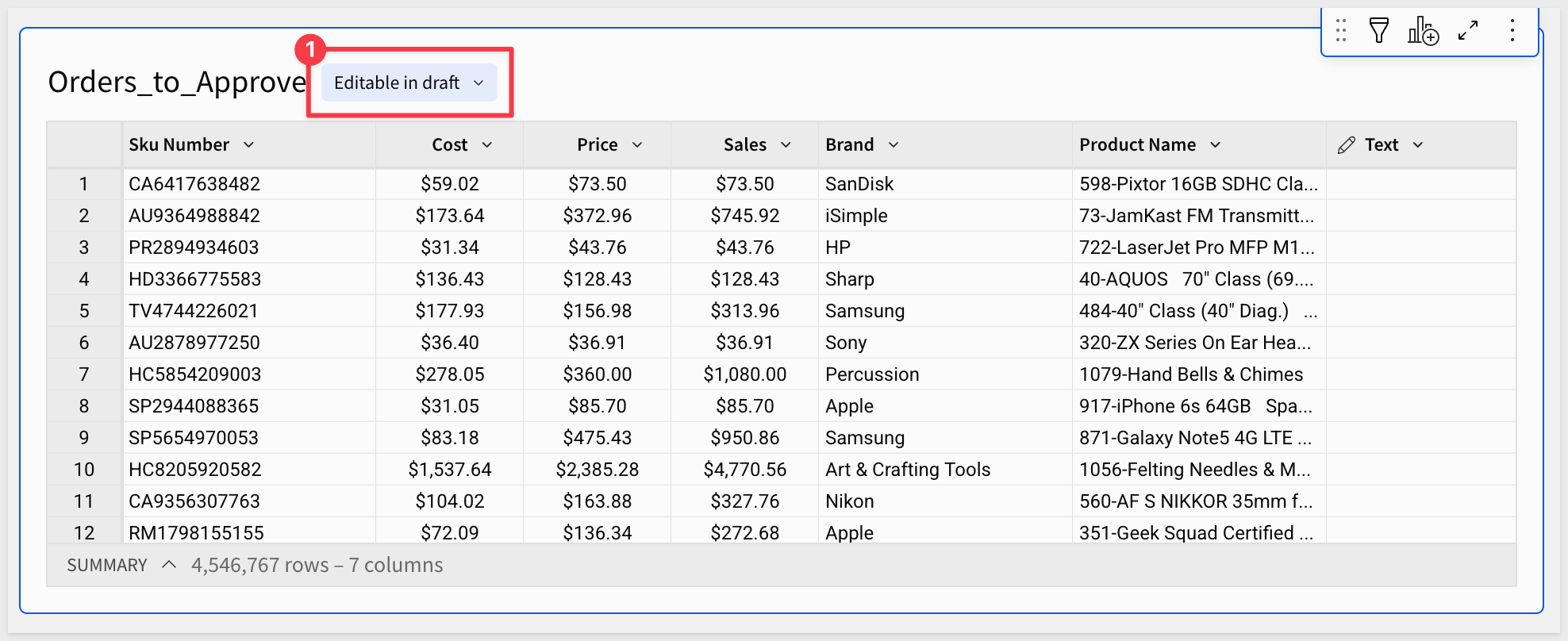 Notice that the linked input table ("input table") indicates that it is Editable in draft. Who can edit input table data and under what circumstances is a detailed topic that is too broad to cover here.