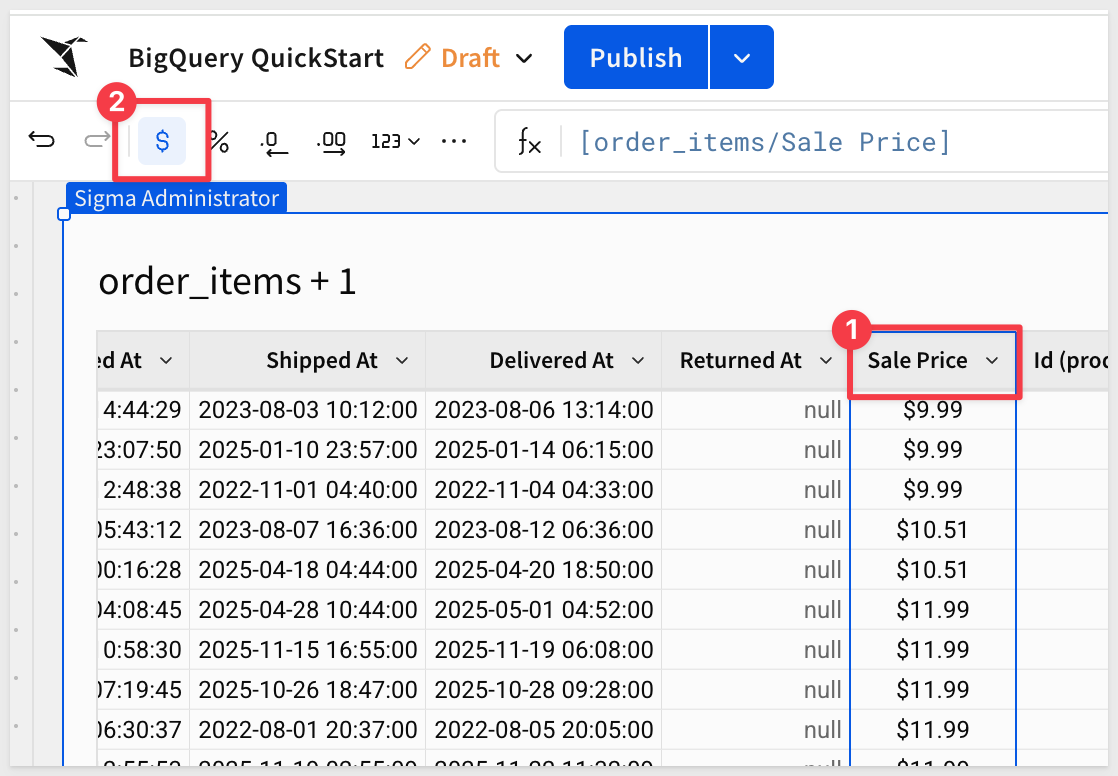 This QuickStart walks you through connecting Sigma to Google BigQuery and using live warehouse data in Sigma workbooks and data models. Sigma queries BigQuery in real time, letting teams explore, join, and model large datasets without extracts or local copies.