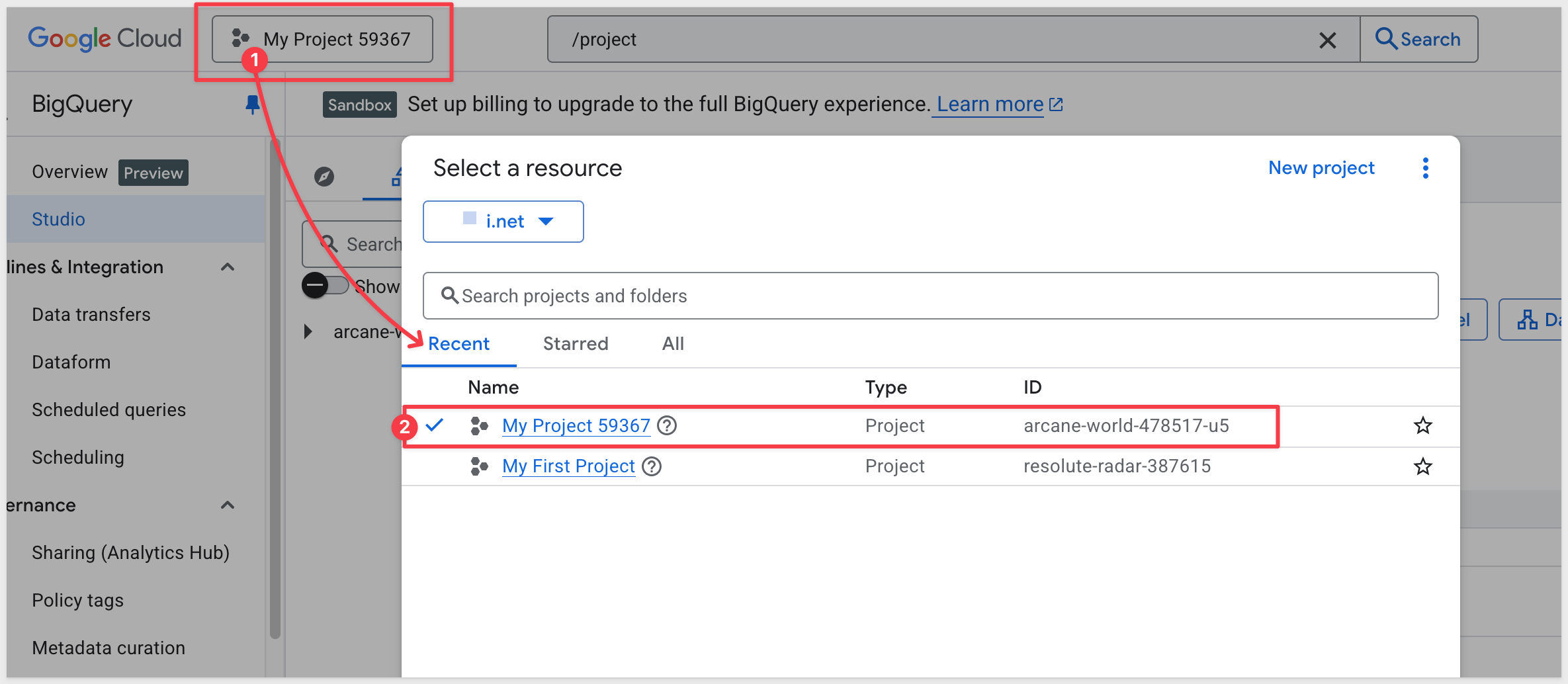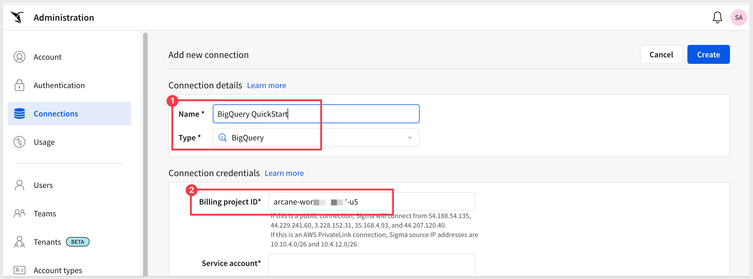 Paste it into the Billing project ID section in the Sigma connection configuration: