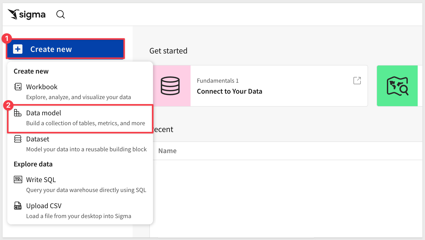 Sigma's data models are a flexible way to build centralized data definitions and guide data exploration.