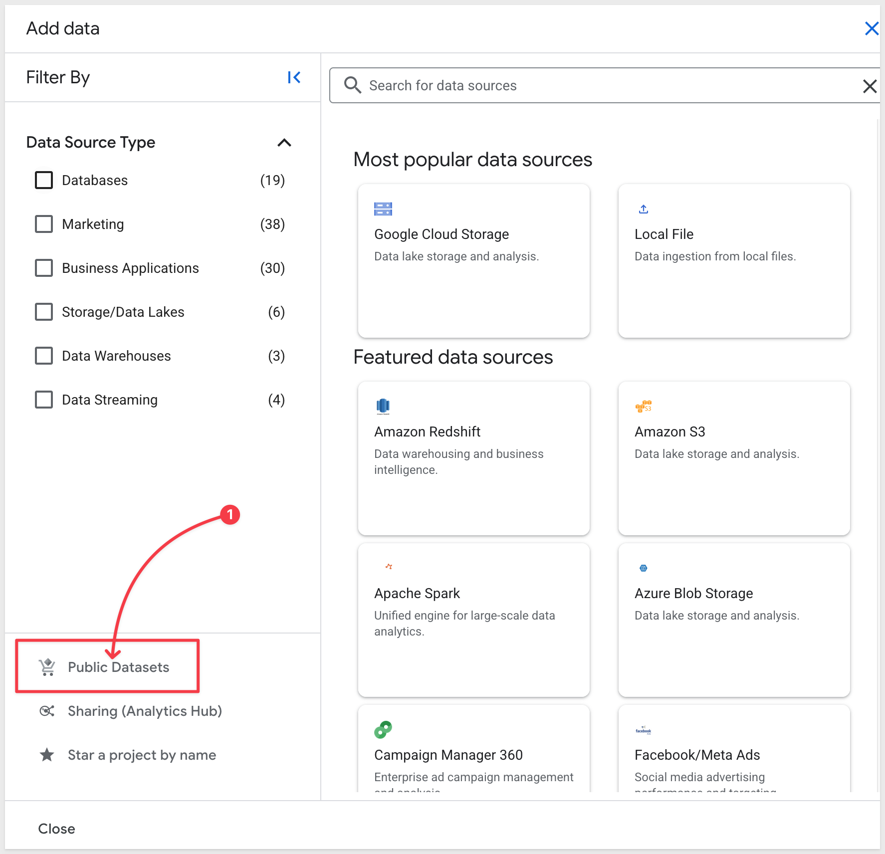 In Sigma, we will create a new data model and connect it to the bigquery-public-data that is provided in the BigQuery sandbox.