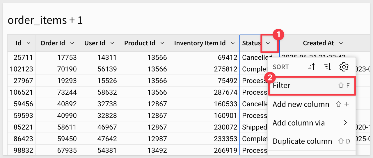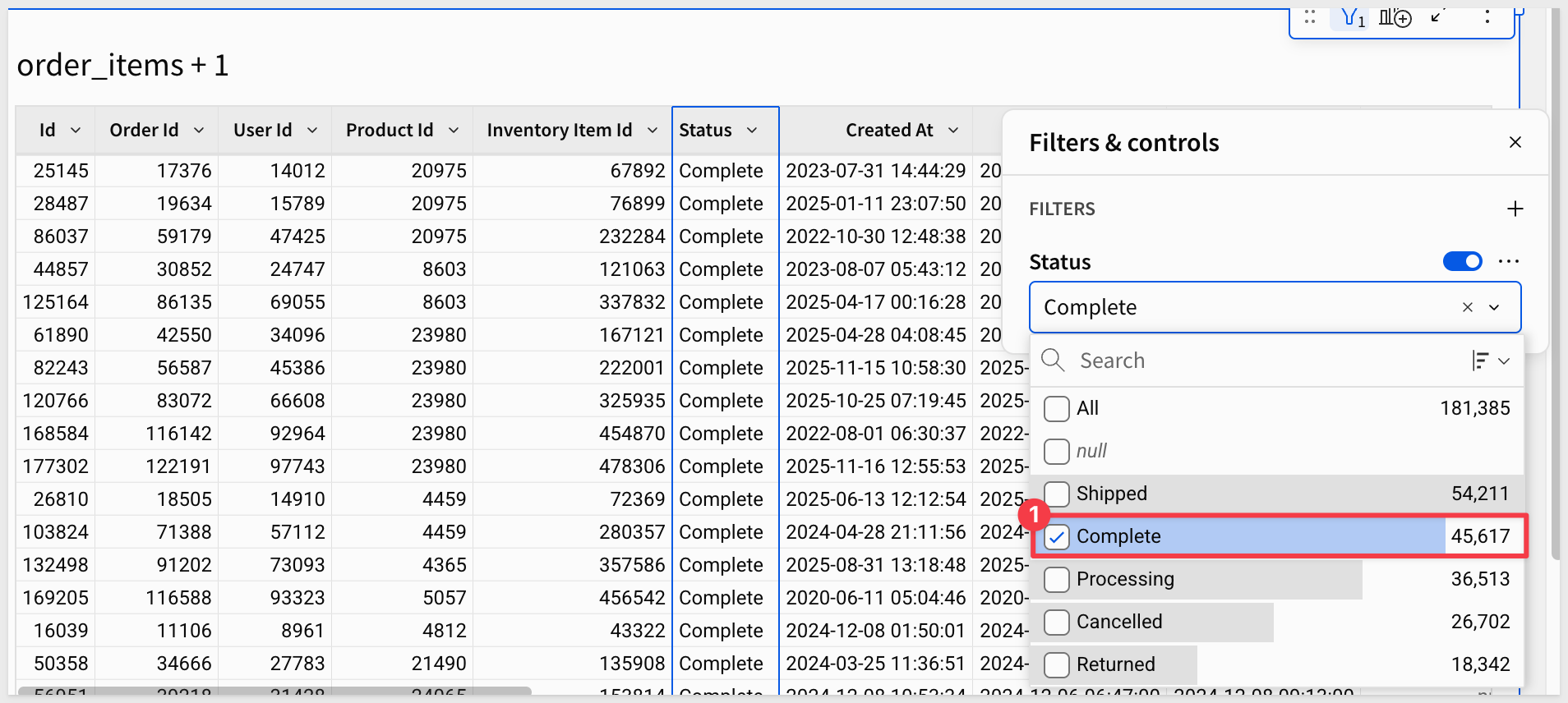 Using the BigQuery QuickStart workbook we will first narrow down our data scope to complete orders.