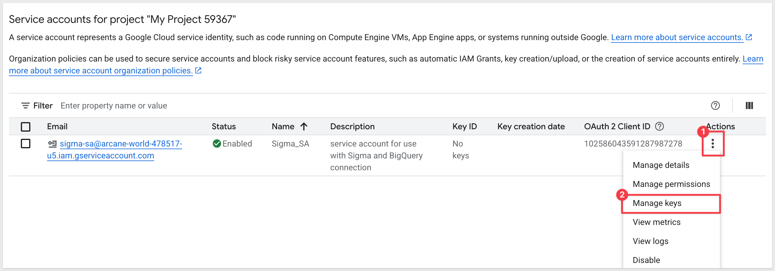 If you use a different authentication or IAM pattern (e.g., workload identities, restricted service accounts), the steps are similar—the goal is to give Sigma a secure, scoped BigQuery identity that can execute warehouse queries.