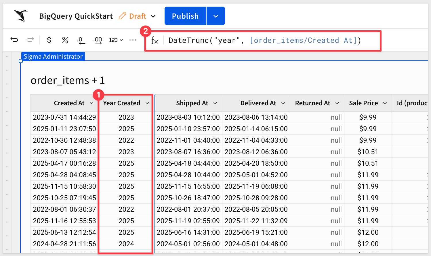 In this section, we will demonstrate some basic features of Sigma that show how easy it is to leverage our data in BigQuery while working in a familiar interface.