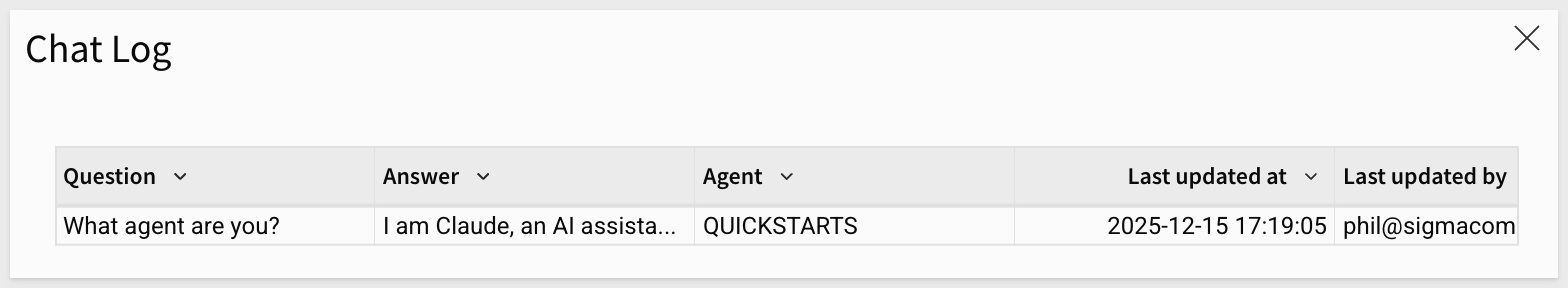 Opening the Chat Log we see the one row of data: