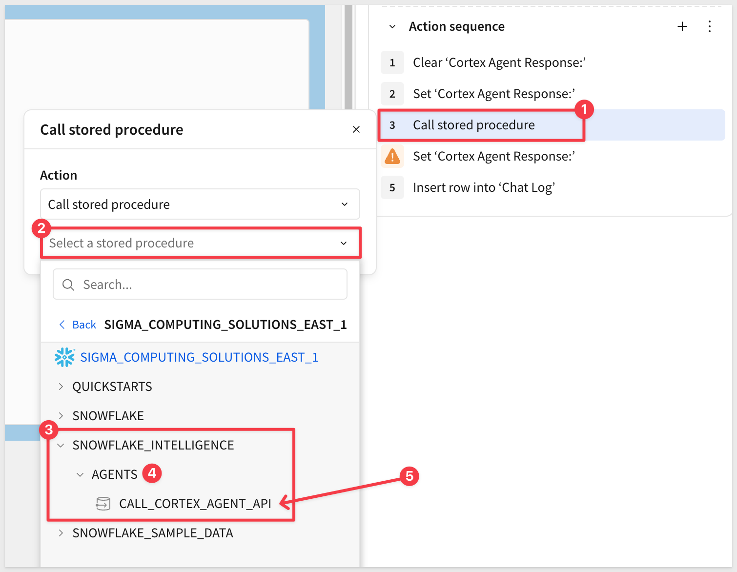 Next we create a stored procedure that when called from Sigma, invokes the Snowflake Intelligence Agent via Snowflake's REST API.