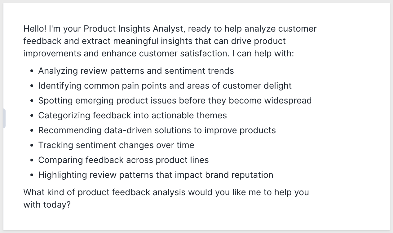 It can summarize reviews by category, detect emerging issues, and highlight products that delight or frustrate customers.