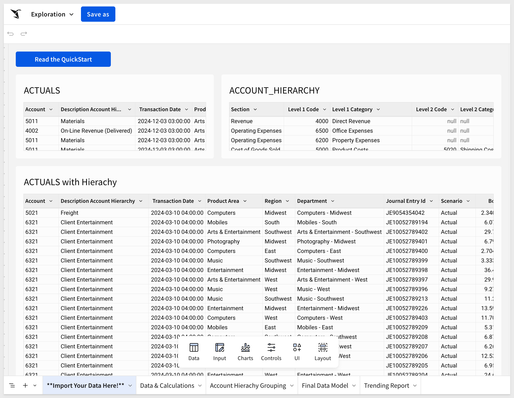 This QuickStart uses two core datasets commonly found in FP&A workflows: